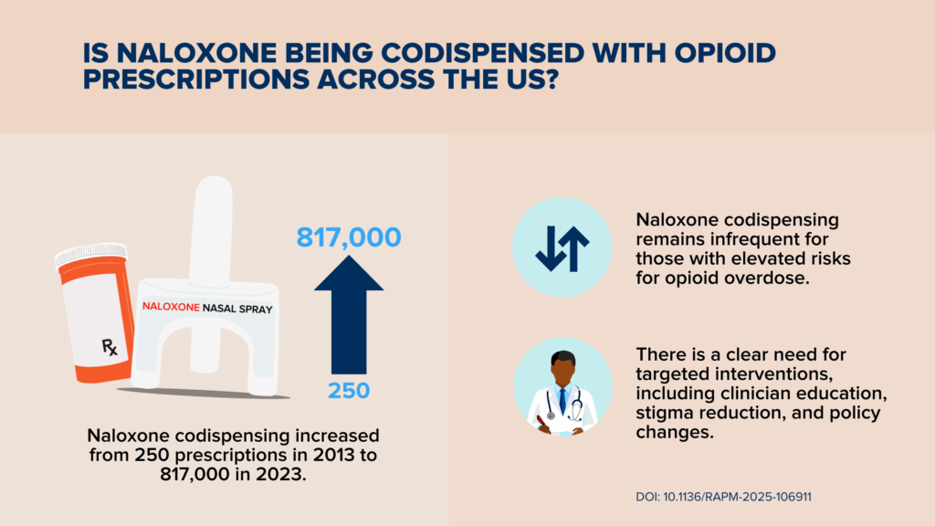 - Naloxone codispensing increased but remained infrequent among individuals at elevated risk for opioid overdose.