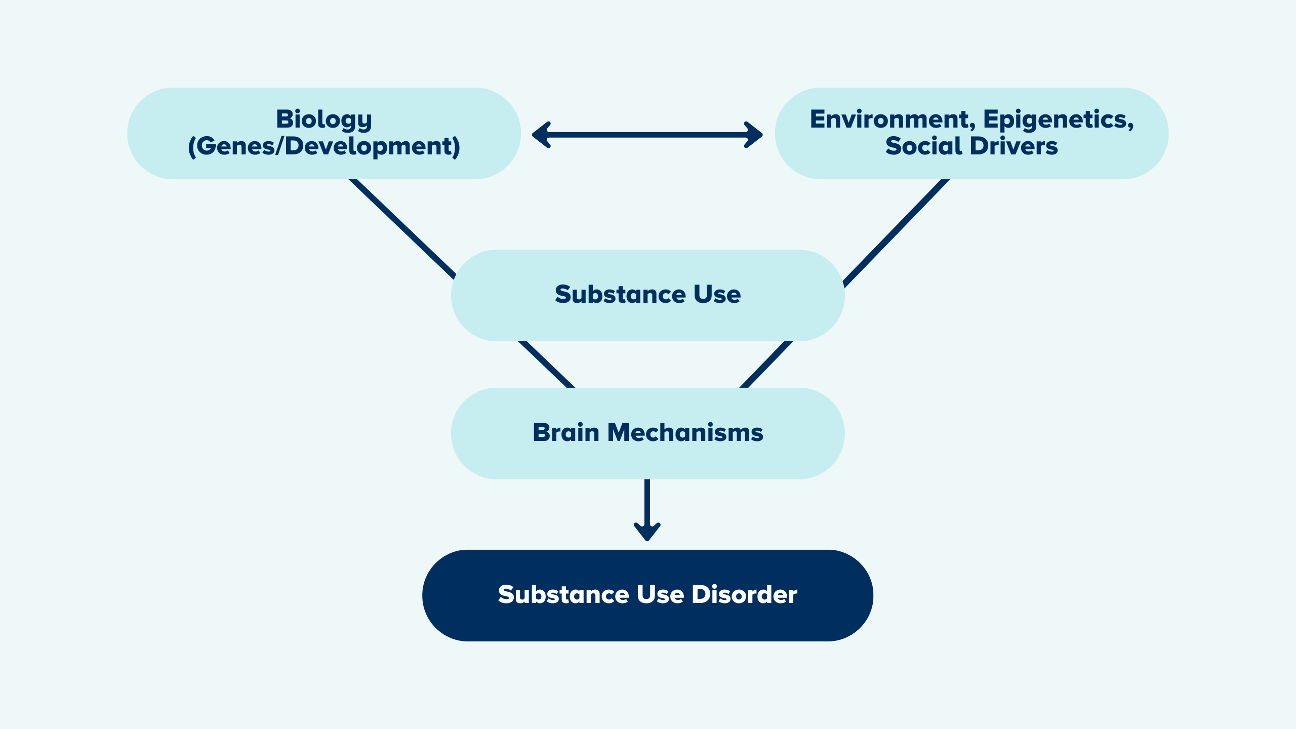 A person’s risk for substance use and developing a substance use disorder is shaped by a mix of biological, psychological, developmental, and environmental factors.