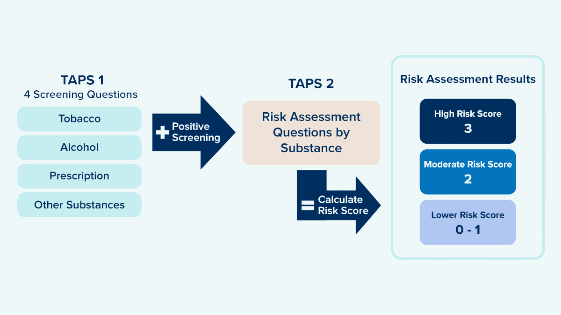 OPEN recommends using the TAPS (Tobacco, Alcohol, Prescription Medication, and Other Substance Use) brief, two-part screening tool.